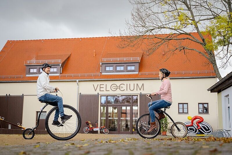 Genießen Sie heute eine Radtour nach Moritzburg mit seinem berühmten Schloss, das unter anderem aus dem Film „Drei Haselnüsse für Aschenbrödel“ bekannt ist. Auf der durchgängig ausgeschilderten Radroute M gelangen Sie über Sörnewitz nach Weinböhla. Innerhalb der Ortsmitte, nahe der Kirche, befindet sich die Fahrrad-Erlebniswelt VELOCIUM. Der Besuch der Ausstellung ist ein Muss für alle Radfans. Die Erlebniswelt berichtet über die 200 Jahre Radfahrtradition in Weinböhla, vermittelt aber auch modernes Wissen und bietet Kindern und Jugendlichen einen Pumptrack zum Austesten des eigenen Könnens.