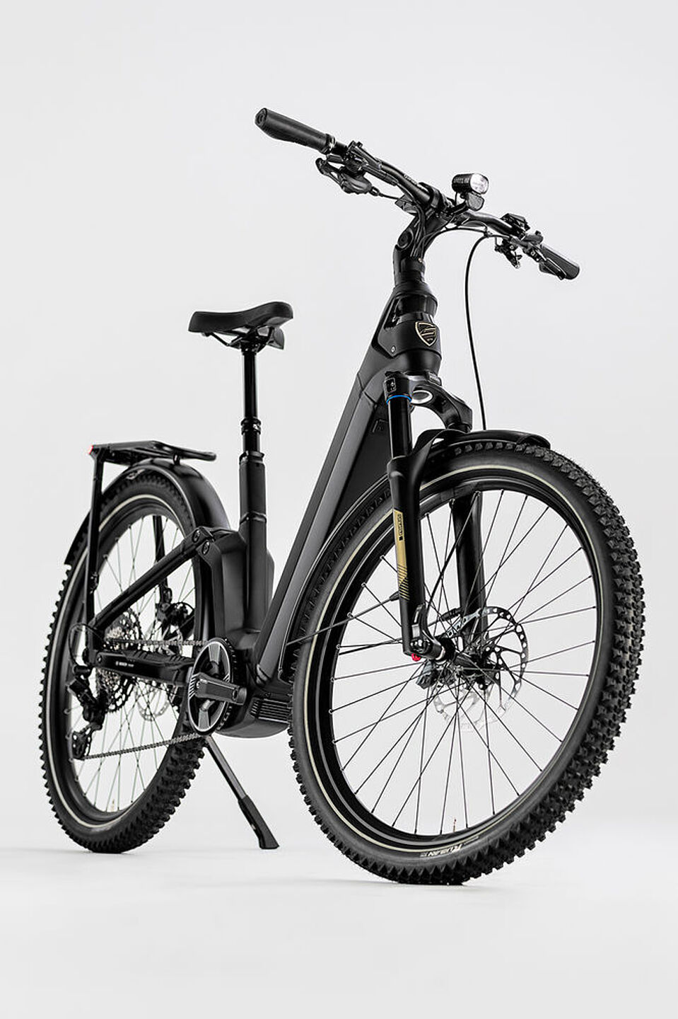 Schwarz, breit, stark: Das Centurion Country LX fährt sich souverän, erfreut mit kräftiger Unterstützung in jeder Situation und ist dank Vollfederung äußerst komfortabel. Dank der kompletten Ausstattung eignet es sich sowohl als Alltags- als auch als Touren- oder Reiserad. Auch schwierigeres Gelände muss man dabei nicht fürchten. Die kantige Optik unterstreicht den Charakter des Rades.